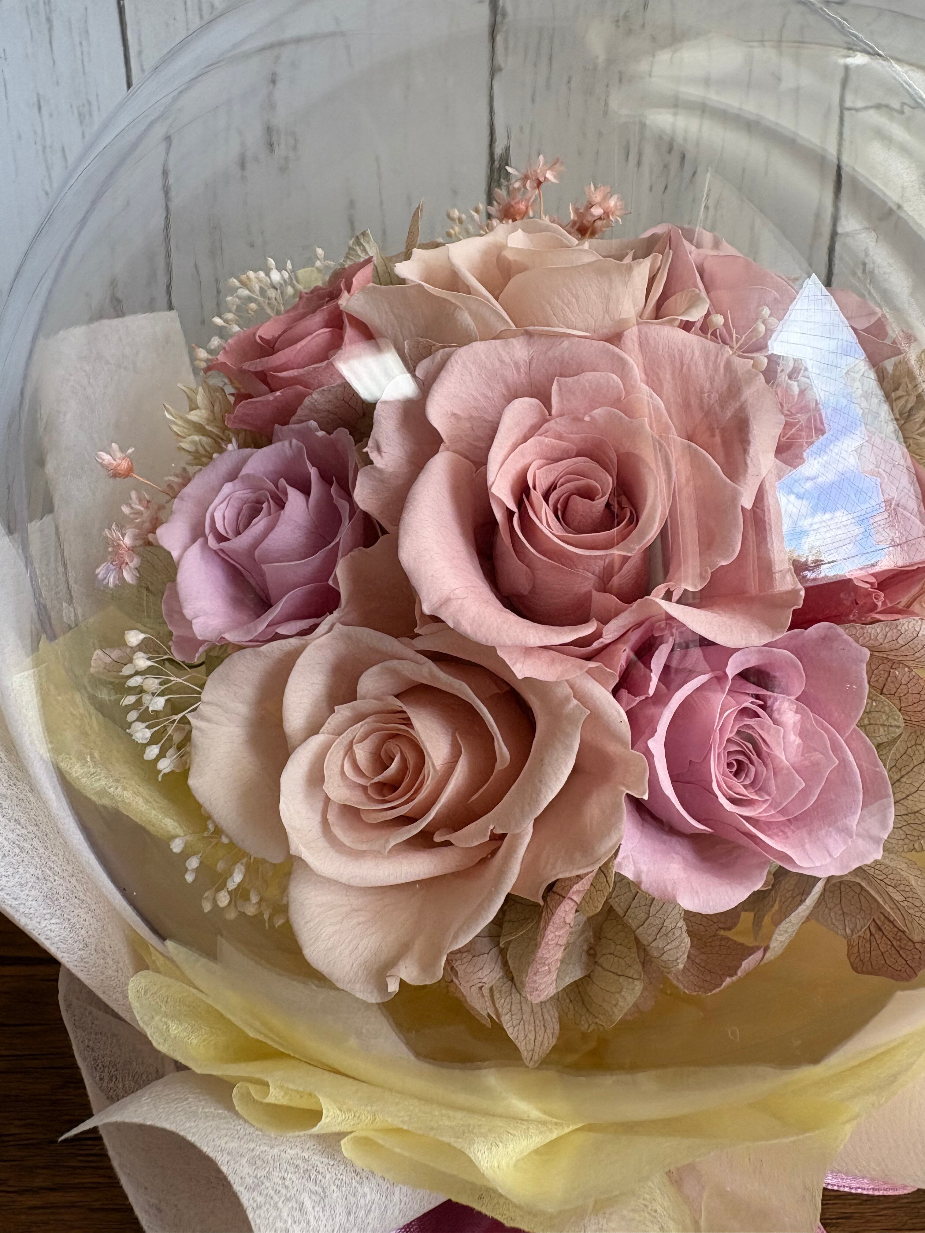 プリザーブドフラワーは水やり不要で、長く楽しめるので、お花のある暮らしが初めての方にも安心です。
